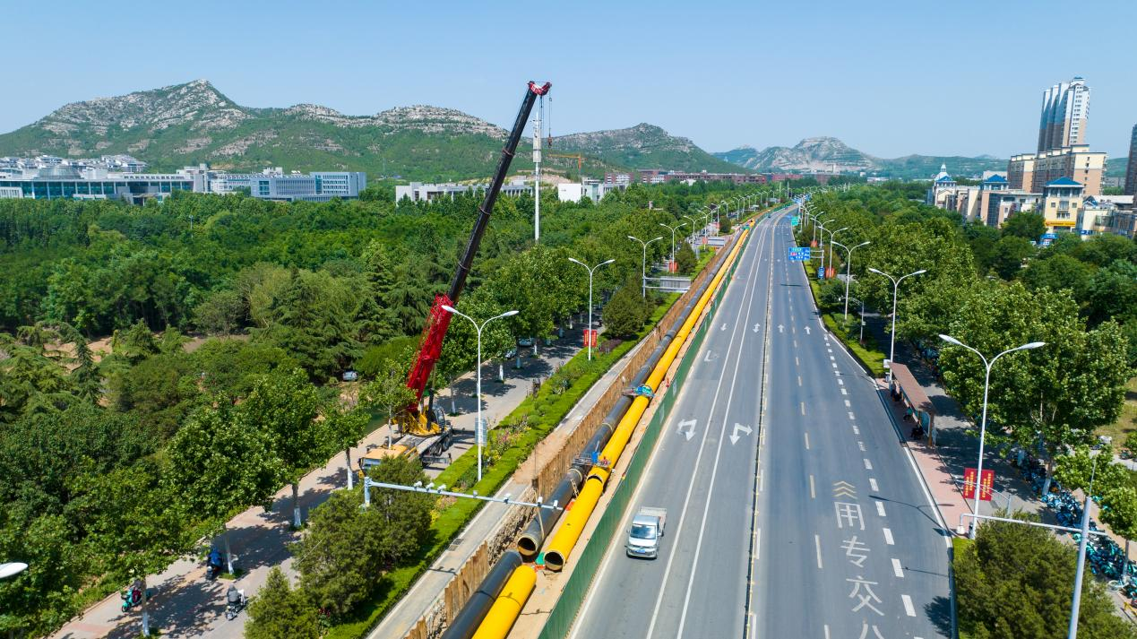 項(xiàng)目是目前國(guó)內(nèi)“管網(wǎng)最長(zhǎng)、管徑最大、難點(diǎn)最多、工期最短”四個(gè)“第一”的域外余熱利用項(xiàng)目。起點(diǎn)自泰安石橫電廠經(jīng)平陰縣、長(zhǎng)清區(qū)、市中區(qū)至濟(jì)南主城區(qū),主干網(wǎng)總長(zhǎng)度約155km。項(xiàng)目建設(shè)中繼泵站3座,中繼能源站2座,管網(wǎng)沿途涉及8個(gè)街道、97個(gè)村居、135處關(guān)鍵節(jié)點(diǎn)、167項(xiàng)施工難點(diǎn)和56條重點(diǎn)道路,采取頂管、直埋、圍堰混凝土包封、桁架架空、箱涵、直埋套管6種穿越方式解決,實(shí)現(xiàn)全域內(nèi)供熱管網(wǎng)互聯(lián)互通??偼顿Y約86.8億元。